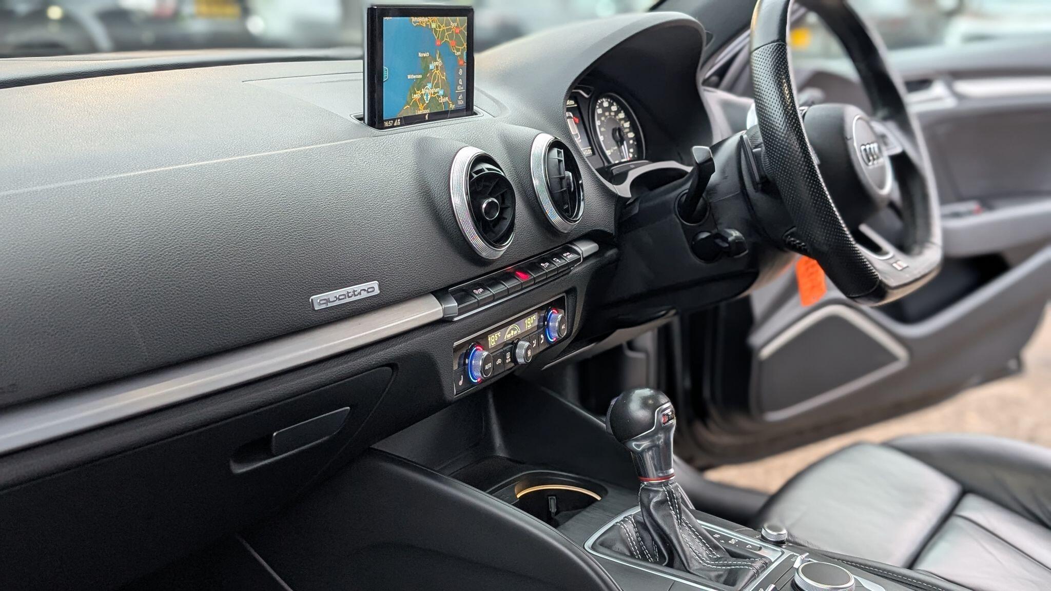 This 2016 Audi S3 TFSI offers an exhilarating driving experience with its impressive 0-62mph acceleration of just 4.6 seconds. Powered by a robust 2.0 litre petrol engine and featuring Audi's renowned four wheel drive system, this Euro 6 compliant model ensures confident handling in all conditions. Inside, you'll find comfort and convenience with heated front seats, a dual zone electronic climate control system, and a Bluetooth interface for seamless connectivity. The light and rain sensor automatically adjusts headlights, while the striking LED headlights with dynamic rear indicators enhance visibility and the vehicle's modern aesthetic.